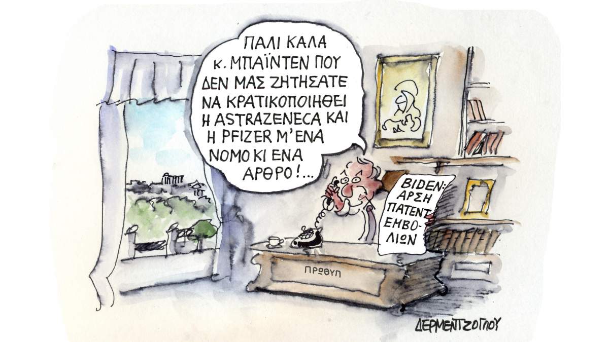 Η «κενή διαθήκη του Μωυσή» είναι το νέο βιβλίο του Στέλιου Κούλογλου, εμπλουτισμένο με 25 απολαυστικές γελοιογραφίες του Γιάννη Δερμεντζόγλου, που καταγράφει καθημερινά τα έργα και τις ημέρες της κυβέρνησης Μητσοτάκη. Σαν σήμερα 6 Μαΐου 2021 Ο πρόεδρος των ΗΠΑ, Τζο Μπάιντεν, τάσσεται υπέρ της άρσης της πατέντας των εμβολίων κατά του κορονοϊού και φιλοκυβερνητικά […]
