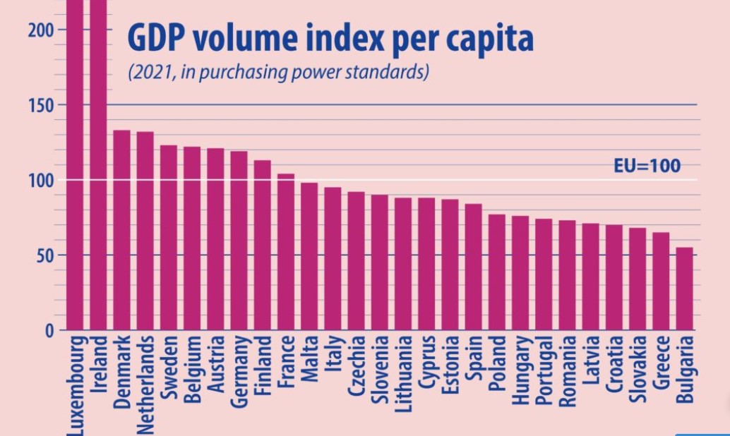 Ουραγός στην ΕΕ είναι η Ελλάδα, όσον αφορά το κεφαλήν εισόδημα (ΑΕΠ), σύμφωνα με τα στοιχεία της Eurostat καταδεικνύοντας την δυσμενή οικονομική θέση της χώρας μας και την οικονομική κατάσταση των νοικοκυριών. Συγκεκριμένα, σύμφωνα με τα στοιχεία του 2021, το κατά κεφαλήν ακαθάριστο εγχώριο προϊόν εκφρασμένο σε πρότυπα αγοραστικής δύναμης (ΜΑΔ), κινήθηκε 35% κάτω από […]