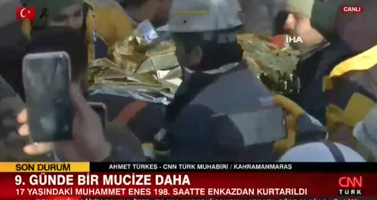 Ο 17χρονος Μουχαμέτ, κι ακόμη ένα άτομο, το όνομα του οποίου δεν έχει γίνει γνωστό, ανασύρθηκαν σήμερα από τα συντρίμμια πολυκατοικίας στην επαρχία Καχραμάνμαρας της Τουρκίας, σχεδόν 198 ώρες μετά τον καταστροφικό σεισμό 7,8 βαθμών της 6ης Φεβρουαρίου, μεταδίδει το τουρκικό τηλεοπτικό δίκτυο CNN Türk. Στα πλάνα που μετέδωσε το δίκτυο, μέλη σωστικών συνεργείων εικονίζονται […]