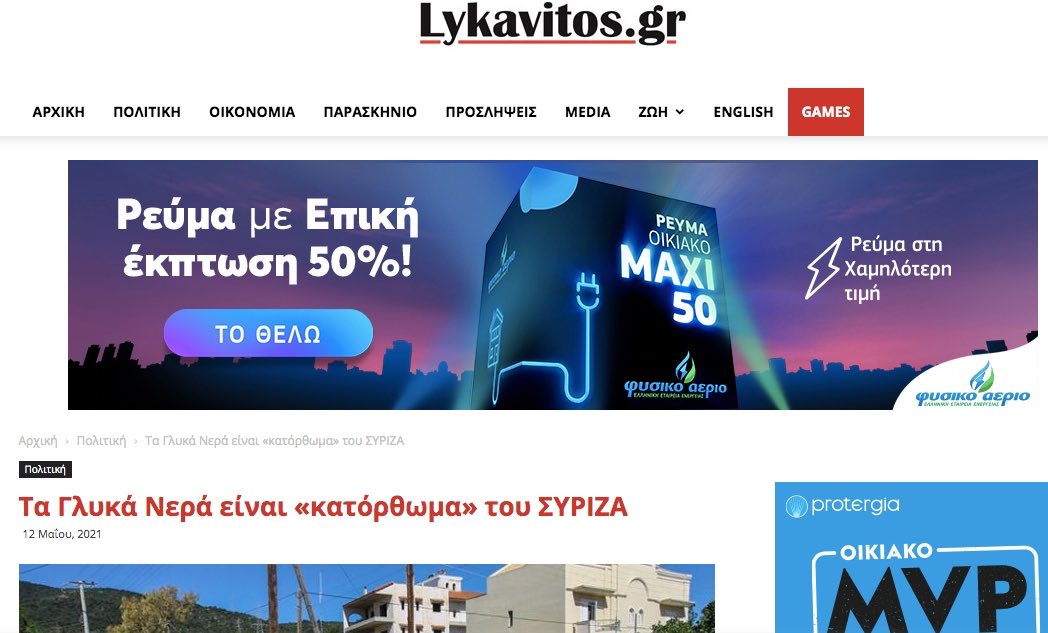 Τα Γλυκά Νερά είναι «κατόρθωμα» του ΣΥΡΙΖΑ