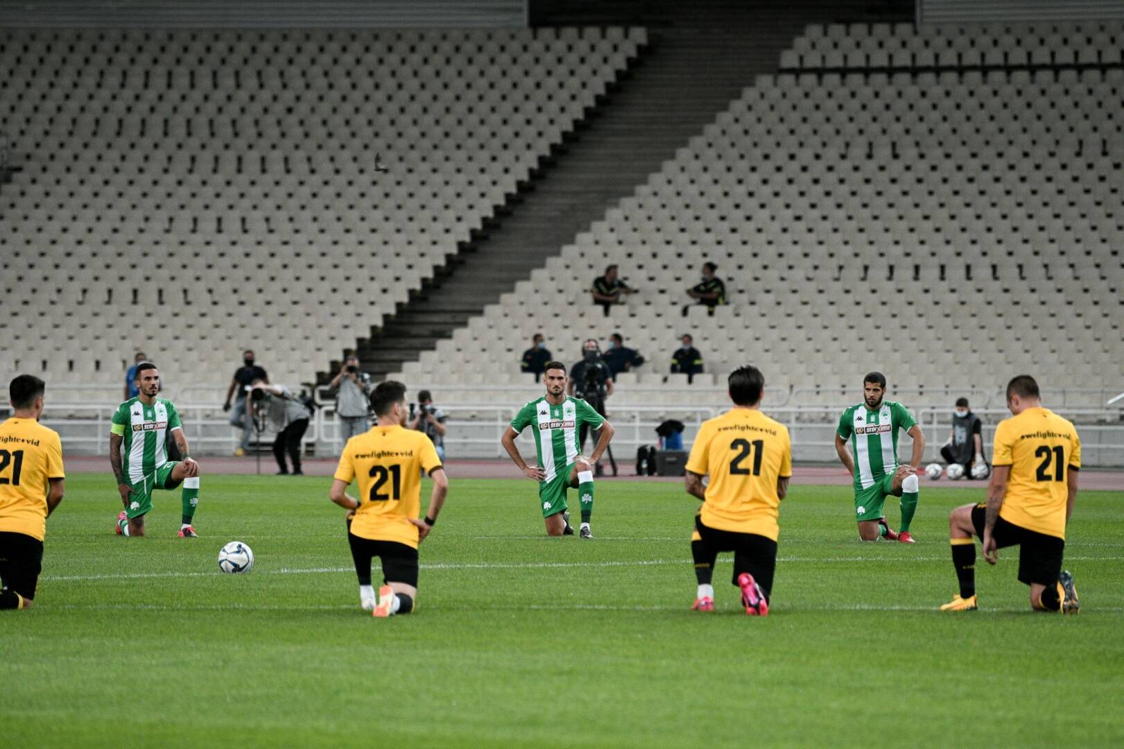 Οι παίκτες ΑΕΚ και Παναθηναϊκού γονάτισαν είπαν «όχι» στον ρατσισμό {Βίντεο]