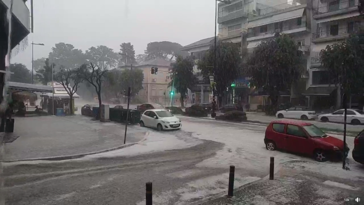 Πρωτοφανής χαλαζόπτωση εκδηλώθηκε το μεσημέρι του Σαββάτου στο κέντρο της πόλης των Ιωαννίνων, με το σκηνικό του καιρού μόνο με καλοκαίρι να μην μοιάζει. Το χαλάζι έχει μέγεθος φουντουκιού, με αποτέλεσμα οι δρόμοι και τα πεζοδρόμια να δείχνουν χιονισμένα. Η κυκλοφορία των αυτοκινήτων στο κέντρο της πόλης γίνεται με δυσκολία.