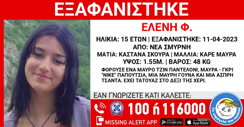 Συναγερμός για εξαφάνιση 15χρονης στη Νέα Σμύρνη