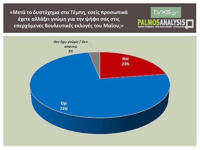 Δημοσκόπηση Tvxs – Palmos Analysis: Σημείο πολιτικής καμπής το δυστύχημα στα Τέμπη