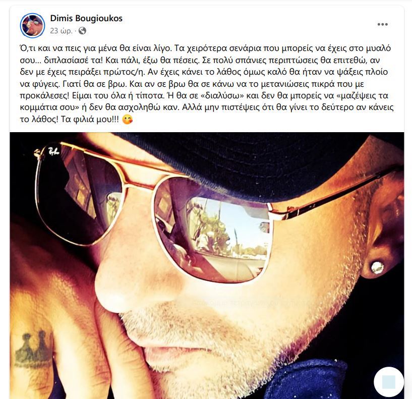 Ο αστυνομικός και καταδικασθείς για σωματεμπορία για στην πολύκροτη υπόθεση trafficking της Ηλιούπολης με θύμα τη 19χρονη Ε., Δημήτρης Μπουγιούκος, ενόσω βρίσκεται εκτός φυλακής με απόφαση του Μικτού Οκρωτού Δικαστηρίου της Αθήνας, εξαπολύει απειλές μέσω αναρτήσεων στα social media. Μάλιστα, όπως καταγγέλλει η δικηγόρος της Ε., Αντωνία Λεγάκη, η νεαρή γυναίκα έλαβε με μήνυμα από […]
