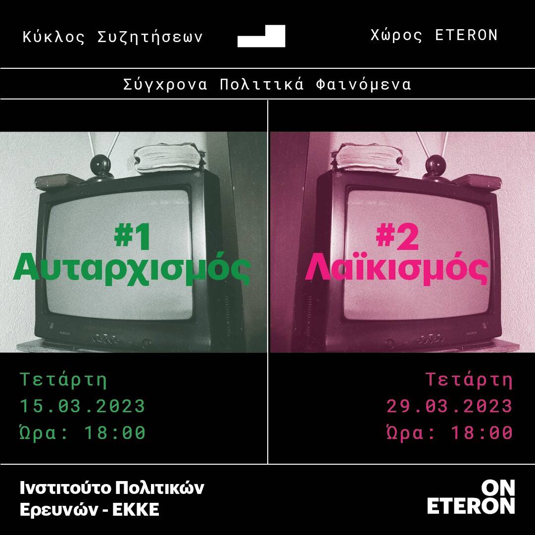 Το Eteron – Ινστιτούτο για την Έρευνα και την Κοινωνική Αλλαγή, σε συνεργασία με το Ινστιτούτο Πολιτικών Ερευνών του Εθνικού Κέντρου Κοινωνικών Ερευνών (ΕΚΚΕ), ανοίγει έναν νέο Κύκλο Συζητήσεων για τα Σύγχρονα Πολιτικά Φαινόμενα. Η πρώτη θεματική με την οποία καταπιάνεται είναι ο «Αυταρχισμός», σε μία συζήτηση που θα πραγματοποιηθεί την Τετάρτη 15 Μαρτίου στις […]