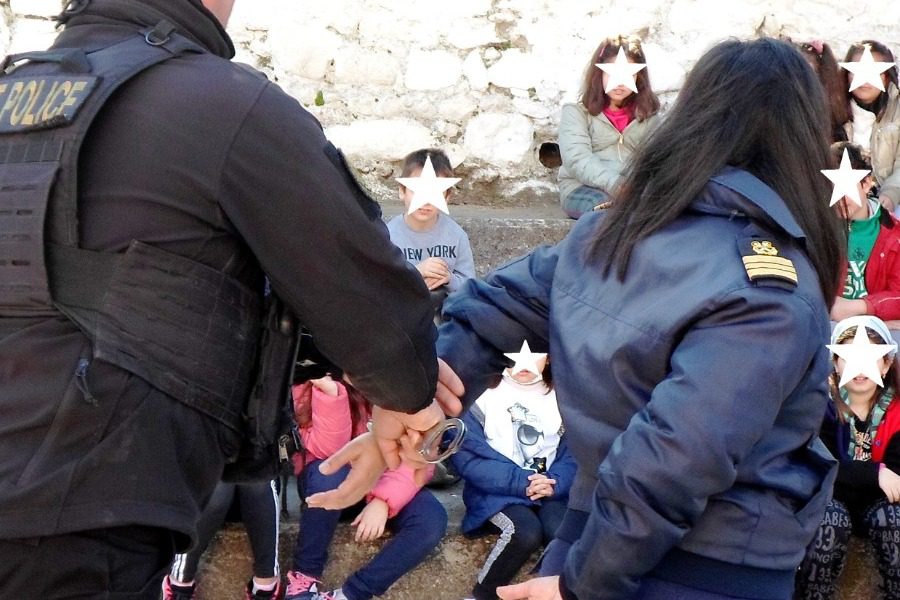 Λέσβος: Επίδειξη χρήσης γκλομπ και σύλληψης με χειροπέδες, σε μαθητές Δημοτικού Σχολείου