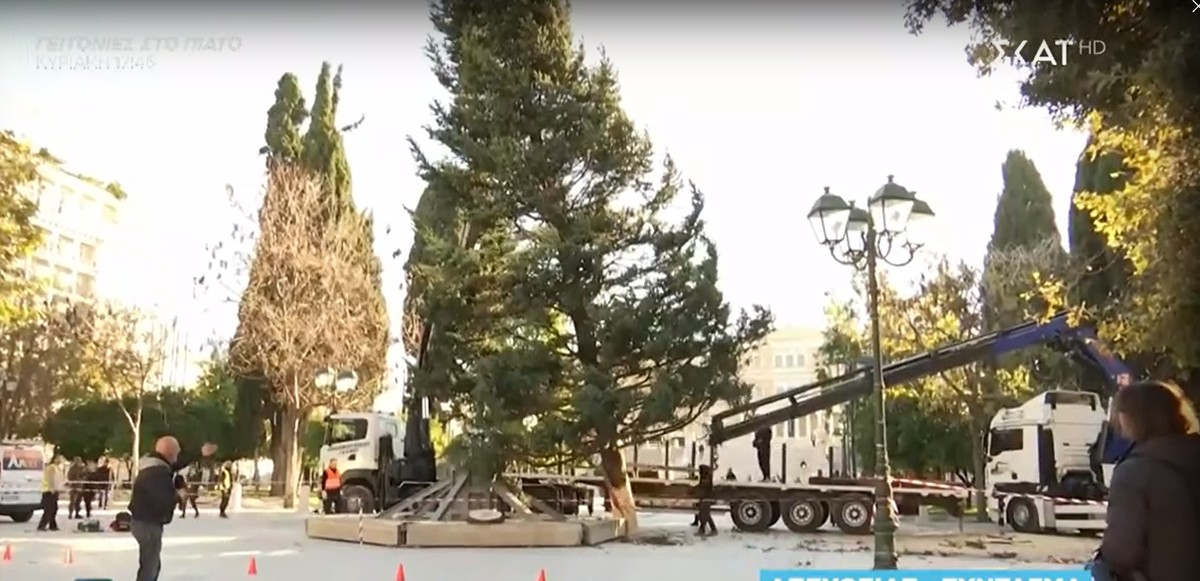 Με δυσκολία η τοποθέτηση του χριστουγεννιάτικου δέντρου στο Σύνταγμα [Βίντεο]