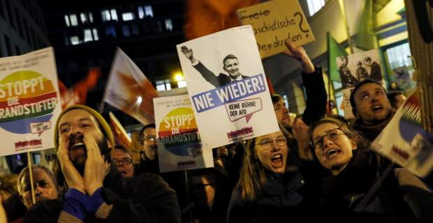 αύρη ημέρα», «Συμμαχία ντροπής»,«Πολιτικός σεισμός»,«Τεράστια πολιτική έκρηξη», «Εκλογή-φιάσκο» ήταν ενδεικτικά οι χαρακτηρισμοί για τη συνεργασία των Χριστιανοδημοκρατών της Μέρκελ (CDU) και της ακροδεξιάς Εναλλακτικής για την Γερμανία (AfD), με σκοπό την ανατροπή της Αριστεράς (Die Linke) στο κρατίδιο της Θουριγγίας.
