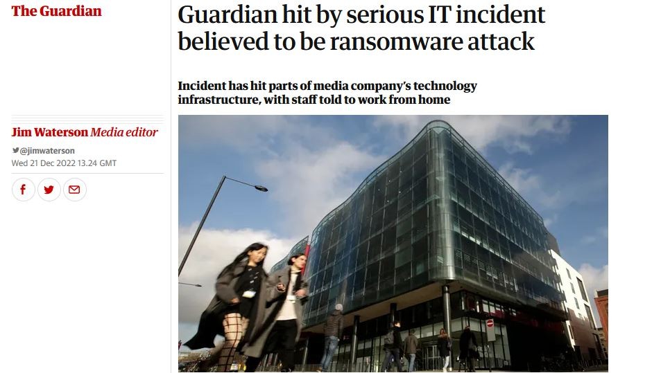 Η βρετανική εφημερίδα Guardian γνωστοποίησε σήμερα ότι έπεσε θύμα κυβερνοεπίθεσης, προφανώς λόγω κακόβουλου λογισμικού, χωρίς όμως να προκύπτουν – μέχρι στιγμής τουλάχιστον – εμπόδια στη δημοσίευση άρθρων στον ιστότοπό της ή στην προετοιμασία για την έκδοση του ημερήσιου φύλλου. Η διεύθυνση ζήτησε από τους υπαλλήλους να εργαστούν εξ αποστάσεως μέχρι το τέλος της εβδομάδας, εν […]