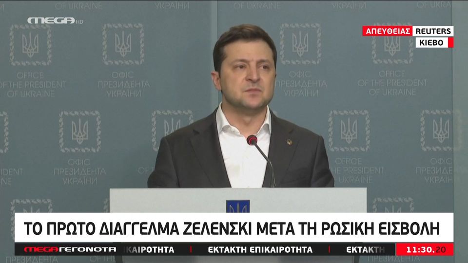 Διάγγελμα Ζελένσκι: Καλεί τους πολίτες να πάρουν τα όπλα