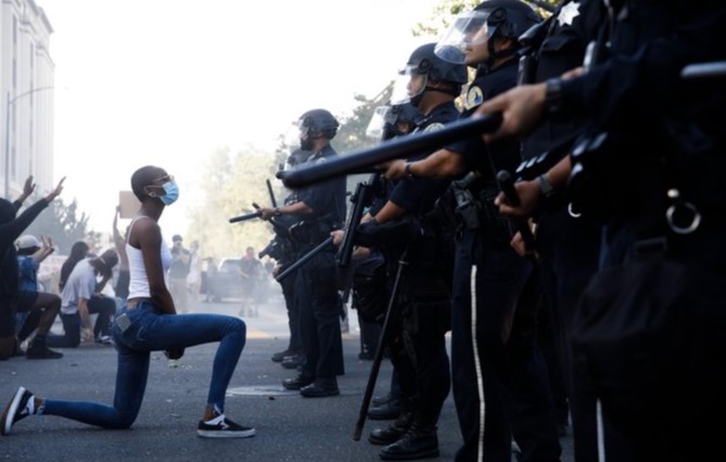 Η φωτογραφία μιας διαδηλώτριας που γονατίζει διαμαρτυρόμενη μπροστά σε ένα «τείχος» αστυνομικών, στη διάρκεια των διαδηλώσεων για την δολοφονία του Τζρτζ Φλόιντ, έγινε viral στα κοινωνικά δίκτυα. H φωτογραφία, που για πολλούς «αιχμαλωτίζει» το πνεύμα των κινητοποιήσεων, τραβήχτηκε από τον Dai Sugano, έναν φωτορεπόρτερ που κάλυψε την περασμένη Παρασκευή τη διαδήλωση στο Σαν Χοσέ για […]