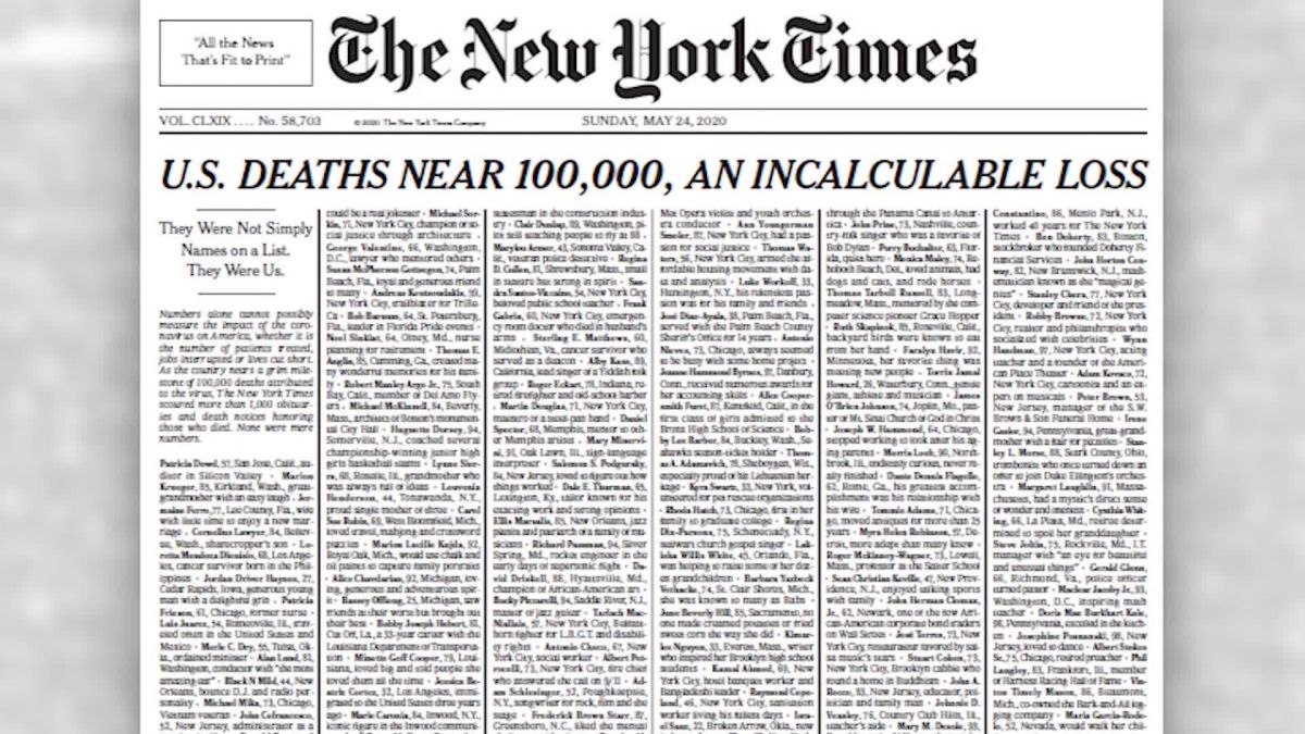 Πρωτοσέλιδο στους New York Times οι νεκροί από την πανδημία