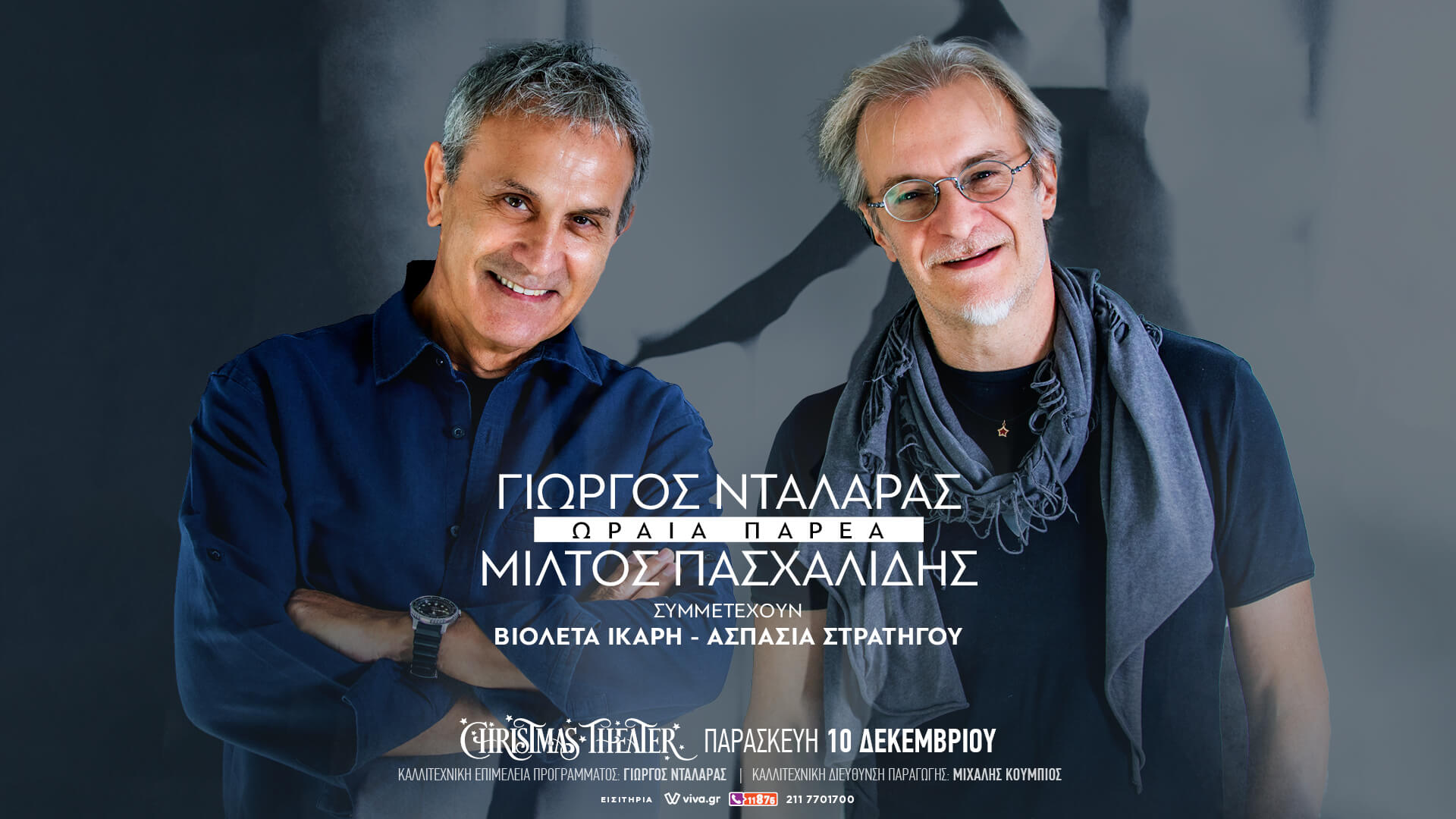 Με τη μαγευτική δύναμη μιας αξεπέραστης μουσικής διαδρομής, ο Γιώργος Νταλάρας έρχεται στο Christmas Theater για μια σειρά συναυλιών με ωραίες παρέες και ανεξάντλητες ιδέες. Προσκαλεί φίλους από τον χώρο του σύγχρονου ελληνικού τραγουδιού με τους οποίους συναντιέται εντός κι εκτός σκηνής. Είναι οι ταλαντούχοι τραγουδοποιοί, ερμηνευτές, μουσικοί που αγαπάει και θαυμάζει και του αρέσει […]