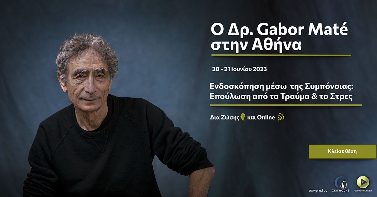 Στις 20 και 21 Ιουνίου 2023, ο Dr. Gabor Maté θα παρουσιάσει σεμινάριο με τίτλο «Ενδοσκόπηση μέσω Συμπόνοιας: Επούλωση από το Τραύμα & το Στρες» στο ξενοδοχείο Divani Caravel. Λίγα λόγια για το σεμινάριο Η Ενδοσκόπηση μέσω Συμπόνοιας είναι μια ψυχοθεραπευτική μέθοδος που αναπτύχθηκε από τον Dr. Gabor Maté και αποκαλύπτει τι κρύβεται πίσω από την […]