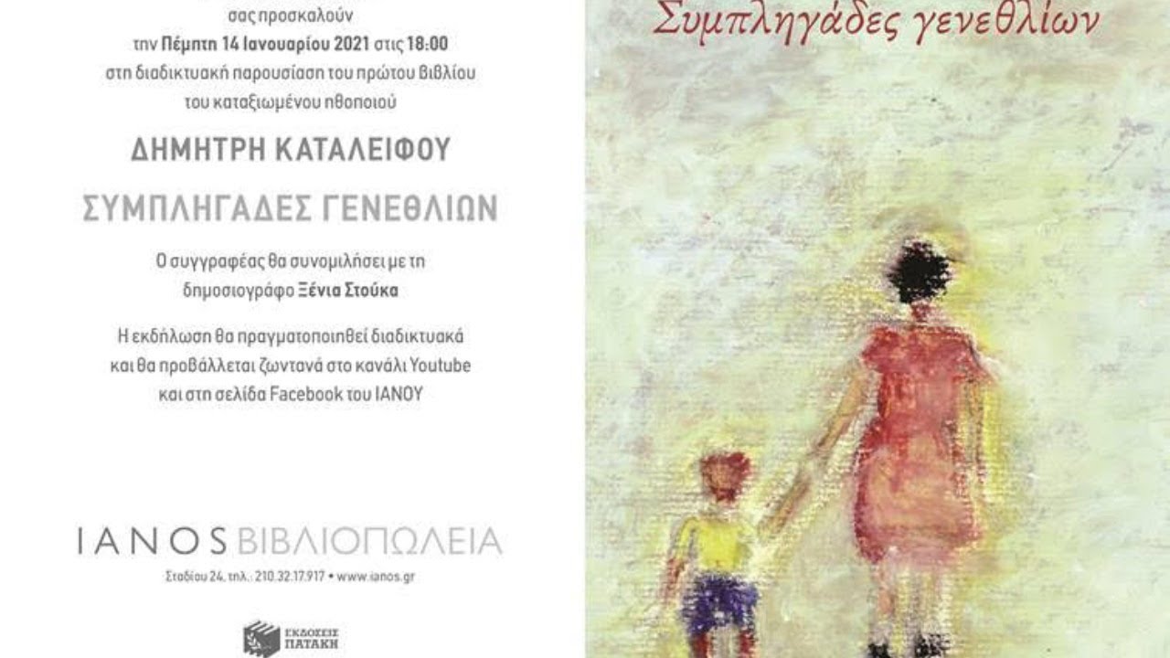Την Πέμπτη 14 Ιανουαρίου στις 18:00 η Αλυσίδα Πολιτισμού IANOS και οι εκδόσεις Πατάκη διοργανώνουν διαδικτυακή παρουσίαση του πρώτου βιβλίου του καταξιωμένου ηθοποιού Δημήτρη Καταλειφού, «Συμπληγάδες γενεθλίων». Εξήντα πέντε σύντομα κείμενα ποιητικής πρόζας τα περισσότερα εκ των οποίων γράφτηκαν μέσα στον εγκλεισμό της πανδημίας. Η εκδήλωση θα πραγματοποιηθεί διαδικτυακά και θα μεταδίδεται ζωντανά από το […]