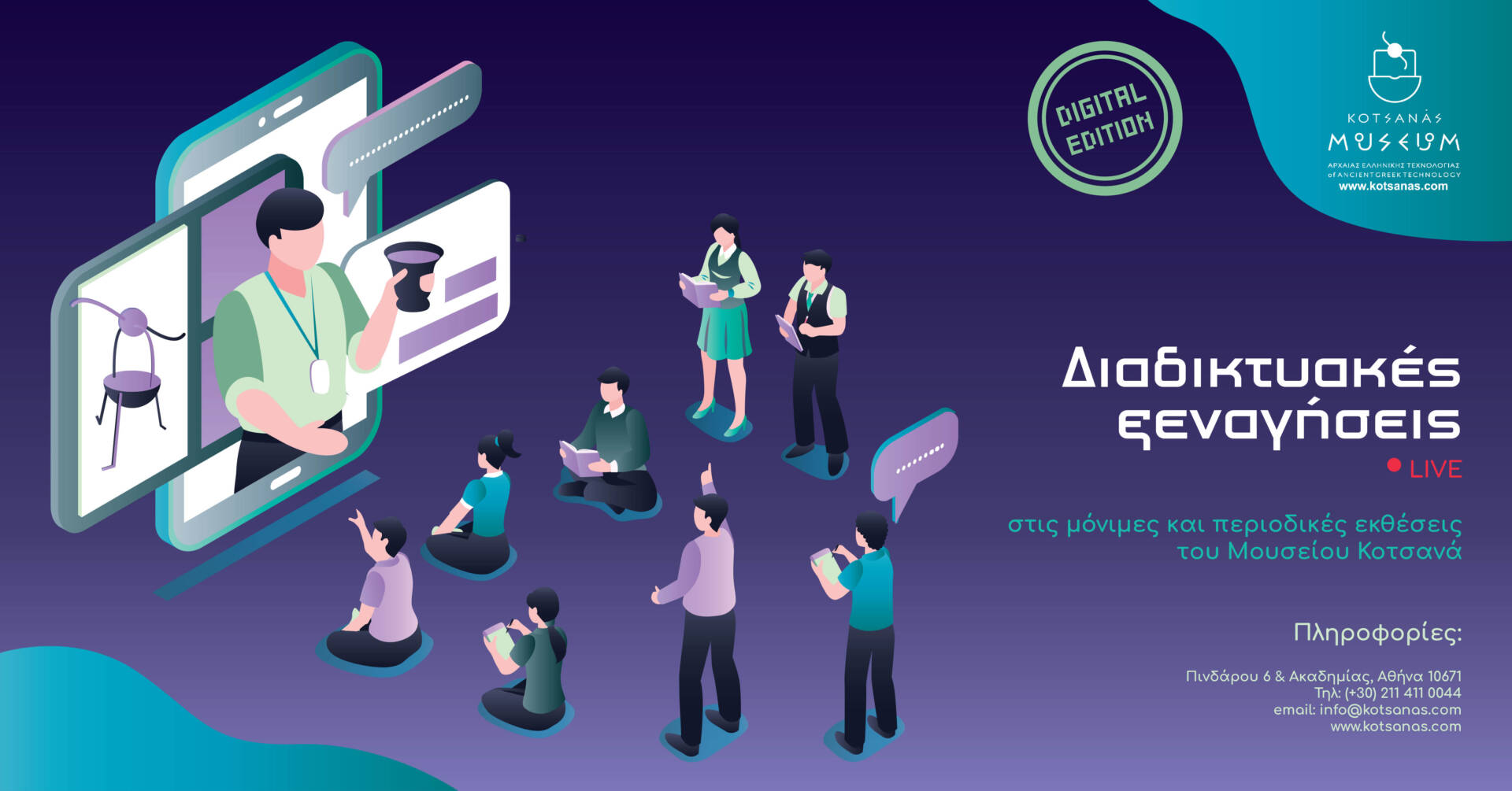 Διανύοντας ξανά μία περίοδο που όλοι καλούμαστε να δείξουμε ατομική και κοινωνική ευθύνη μένοντας στο σπίτι, το Μουσείο Κοτσανά Αρχαίας Ελληνικής Τεχνολογίας (Πινδάρου 6 και Ακαδημίας, Κολωνάκι), μάς καλεί να αξιοποιήσουμε δημιουργικά τον ελεύθερο χρόνο μας και μάς προσκαλεί σε ένα διαδικτυακό ταξίδι εκπαίδευσης και ψυχαγωγίας μέσω διαδικτυακών ξεναγήσεων -live streaming – στις μόνιμες & […]
