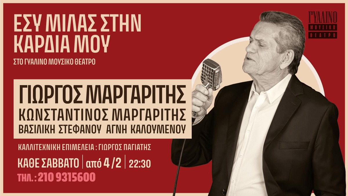 Ο Γιώργος Μαργαρίτης, ο γνήσιος λαϊκός τραγουδιστής, που με την φωνή και τα τραγούδια του πάντα μιλάει στην καρδιά μας, έρχεται στο Γυάλινο Μουσικό Θέατρο, με μια σειρά παραστάσεων με τίτλο «Εσύ μιλάς στην καρδιά μου», από το Σάββατο 4 Φεβρουαρίου και κάθε Σάββατο. Το tvxs.gr εξασφάλισε διπλές προσκλήσεις για τους συνδρομητές για τo Σάββατο […]