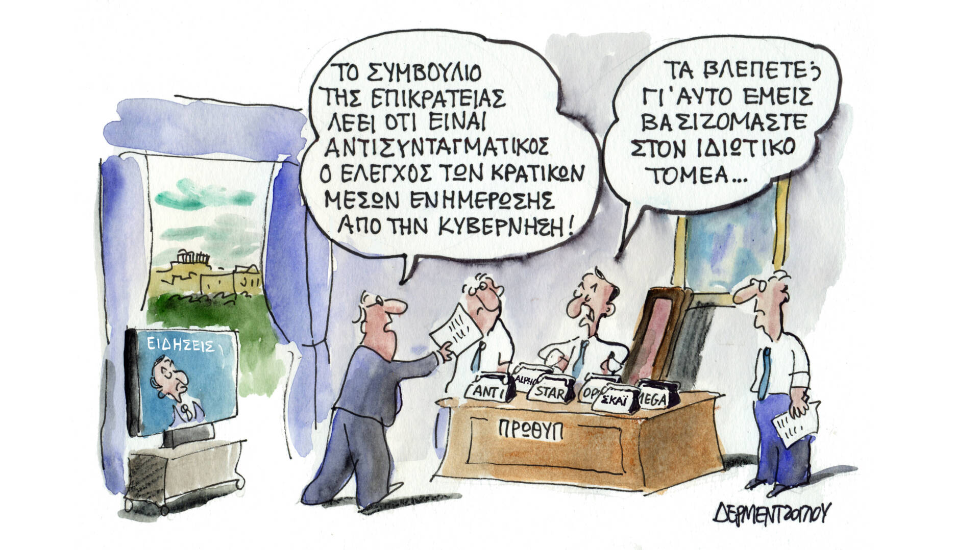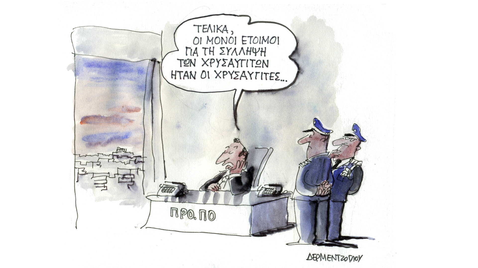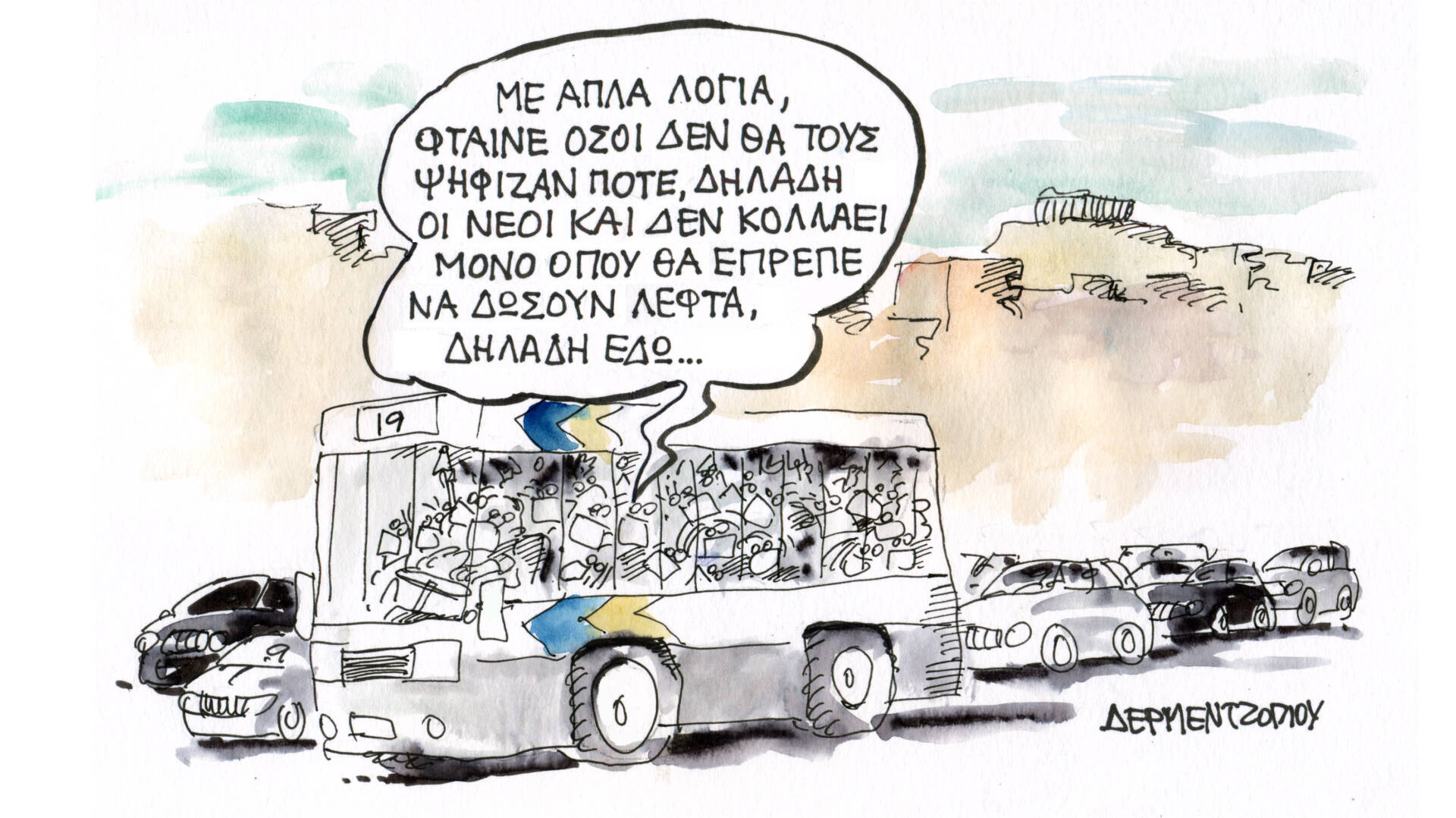 Σκίτσο του Γιάννη Δερμεντζόγλου από τον Ελεύθερο Τύπο.