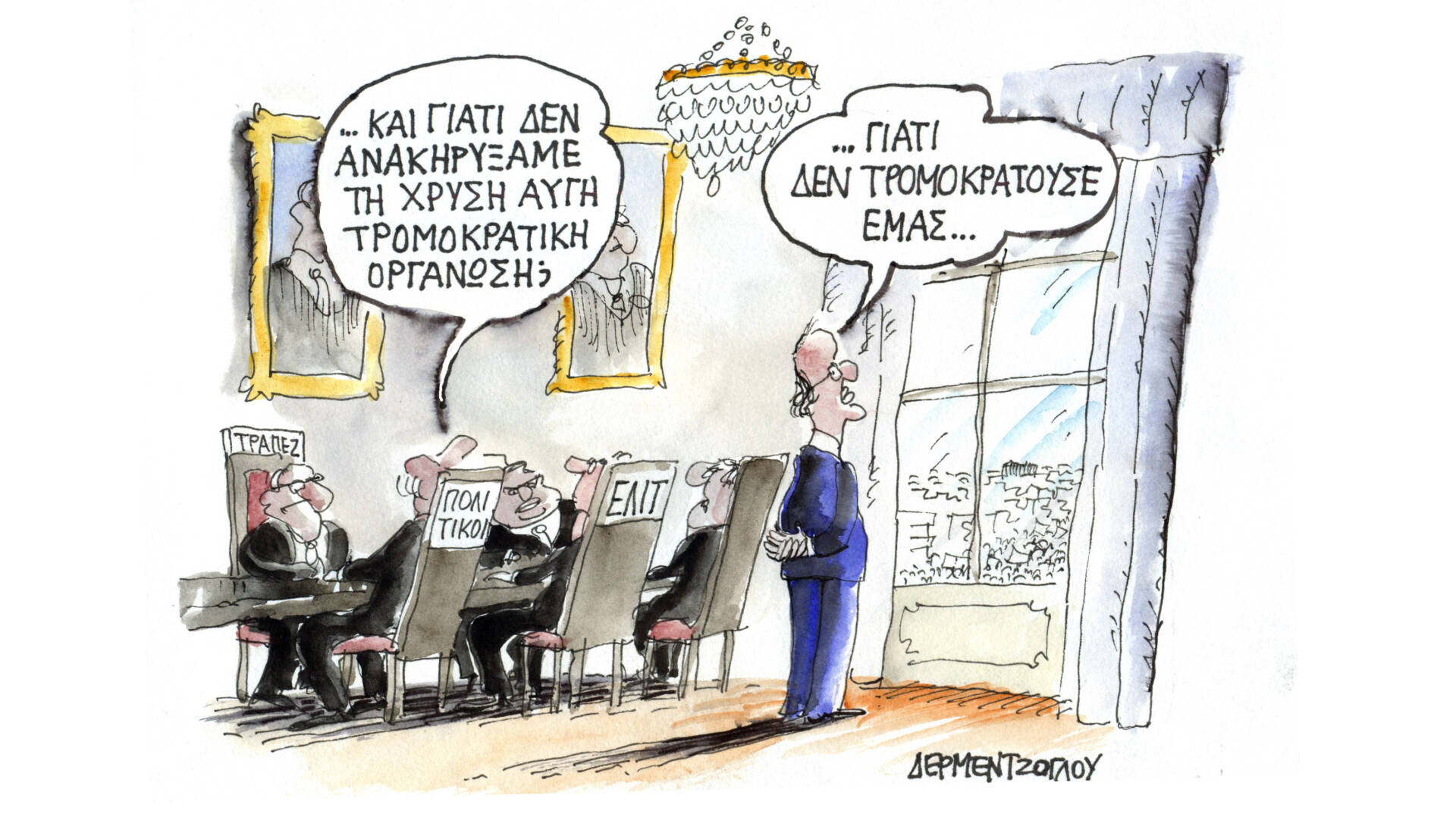 Σκίτσο του Γιάννη Δερμεντζόγλου από τον Ελεύθερο Τύπο.