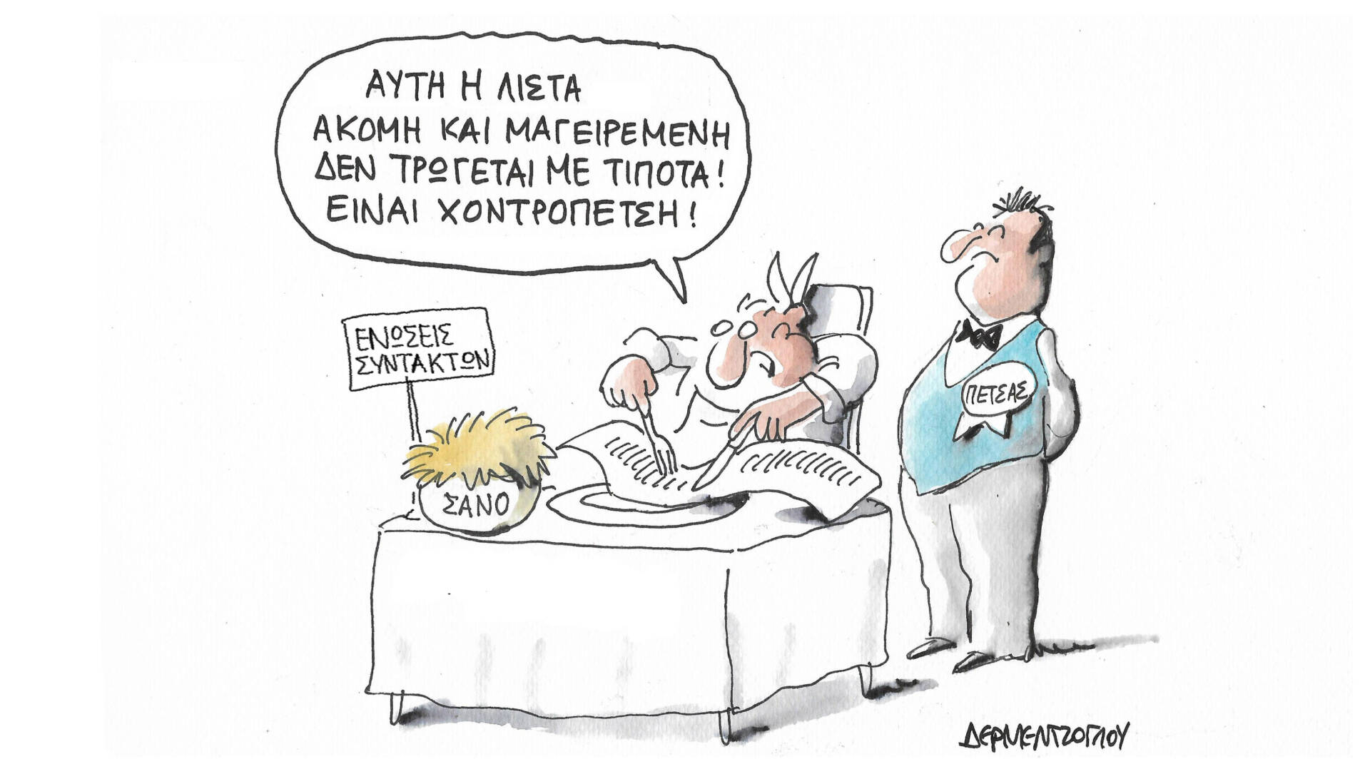 Σκίτσο του Γιάννη Δερμεντζόγλου από τον Ελεύθερο Τύπο.