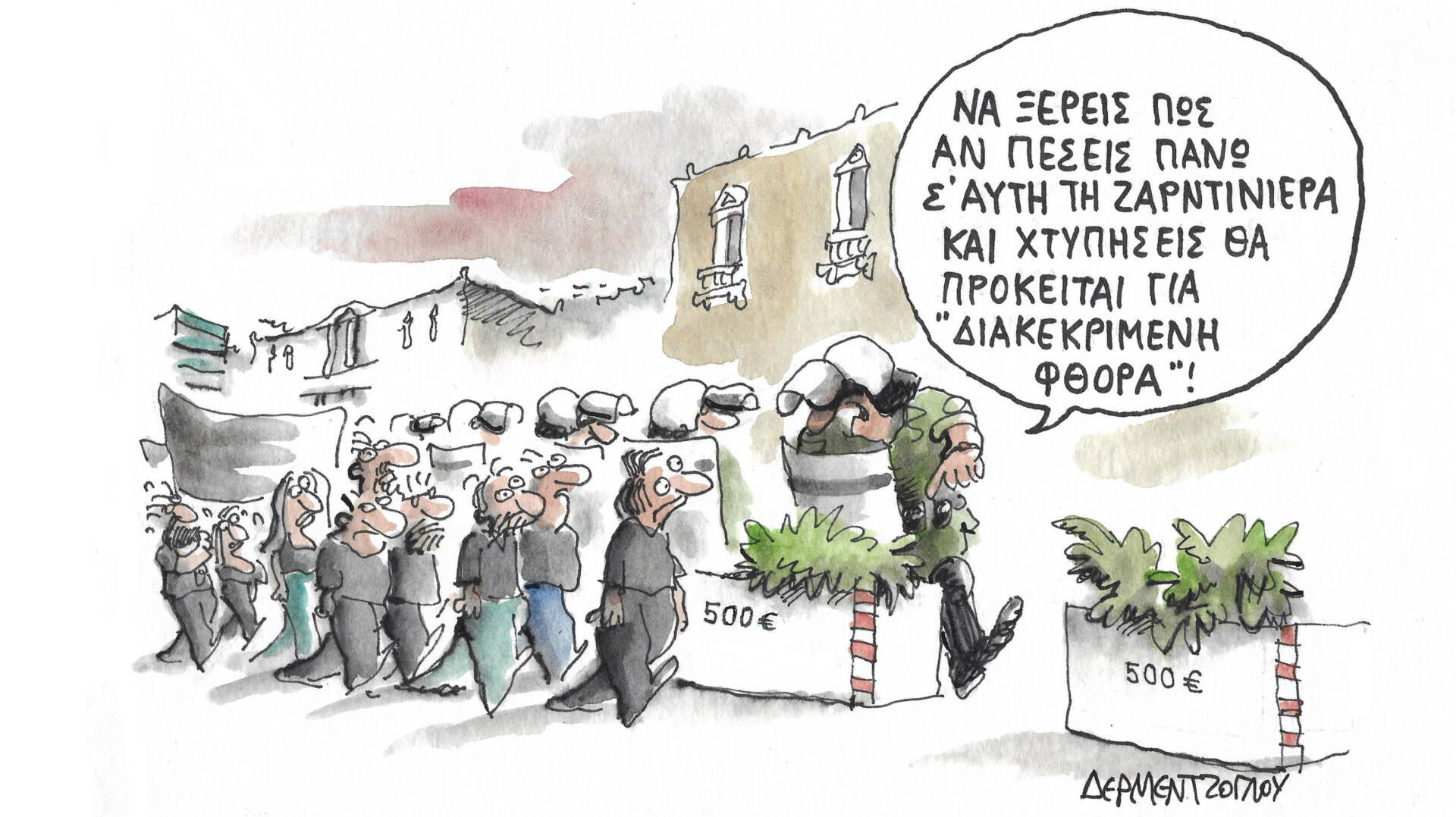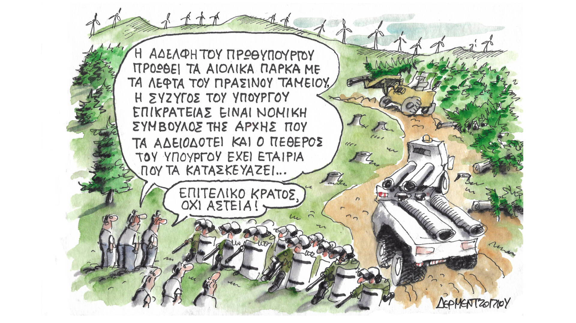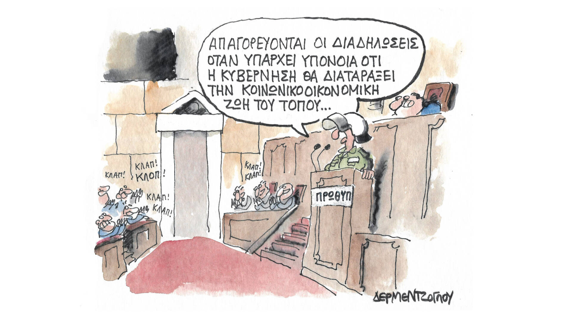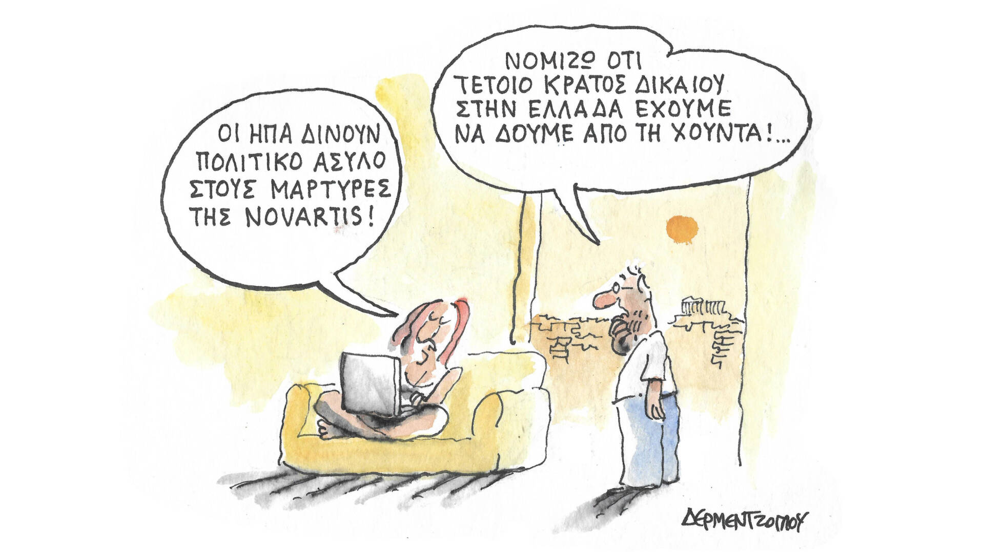 Σκίτσο του Γιάννη Δερμεντζόγλου από τον Ελεύθερο Τύπο.
