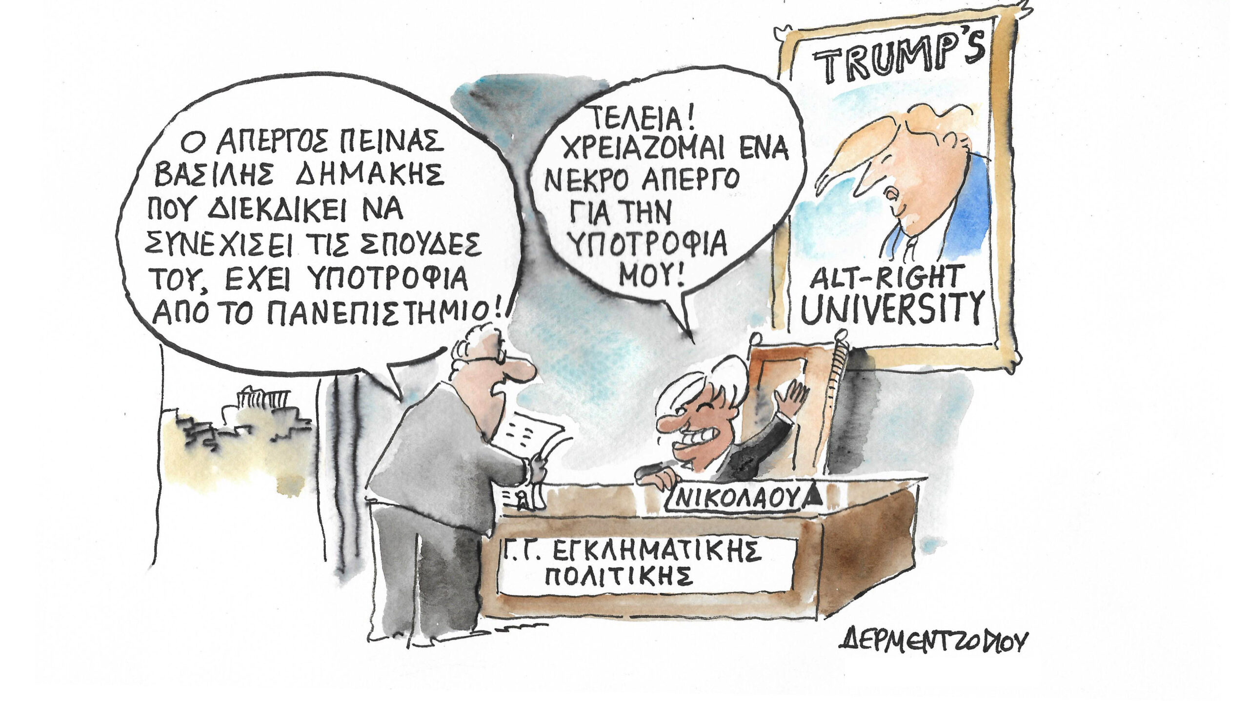 Σκίτσο του Γιάννη Δερμεντζόγλου από τον Ελεύθερο Τύπο.
