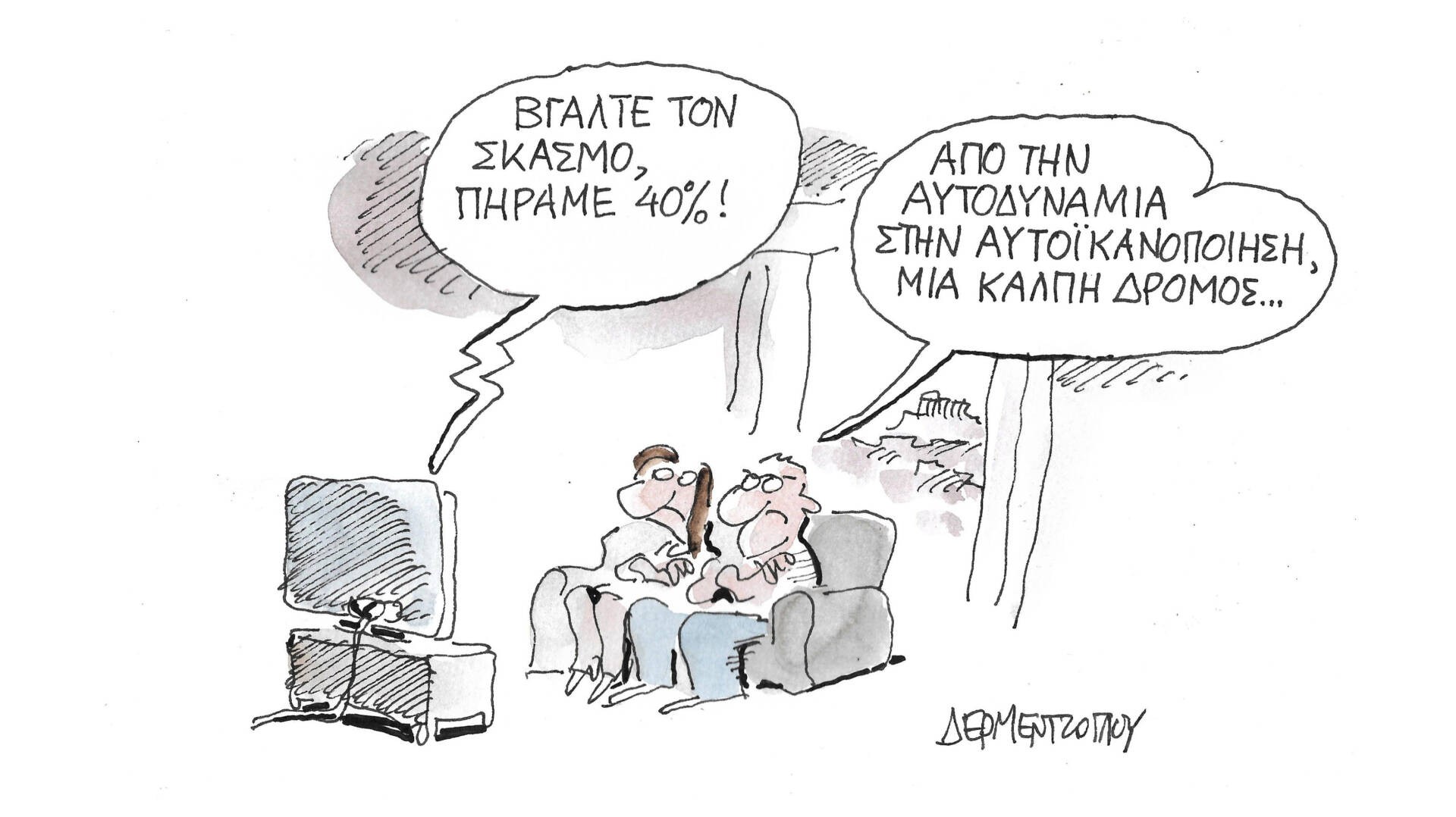 Σκίτσο του Γιάννη Δερμεντζόγλου στο tvxs.gr.
