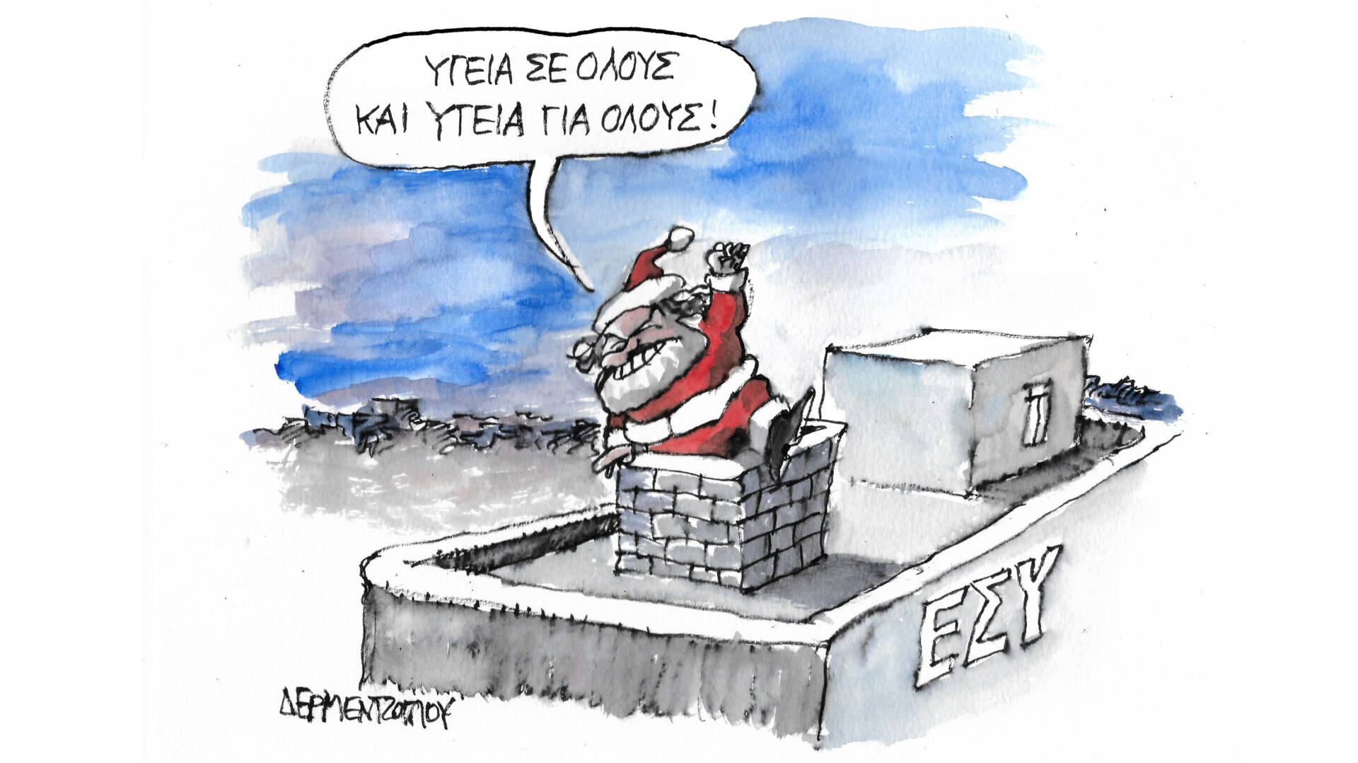 Το Tvxs.gr αποχαιρετά την χρονιά που φεύγει και υποδέχεται την χρονιά που έρχεται με ένα σκίτσο του Γιάννη Δερμεντζόγλου. Χρόνια Πολλά και Καλή Χρονιά! Υγεία σε όλους και Υγεία για όλους!