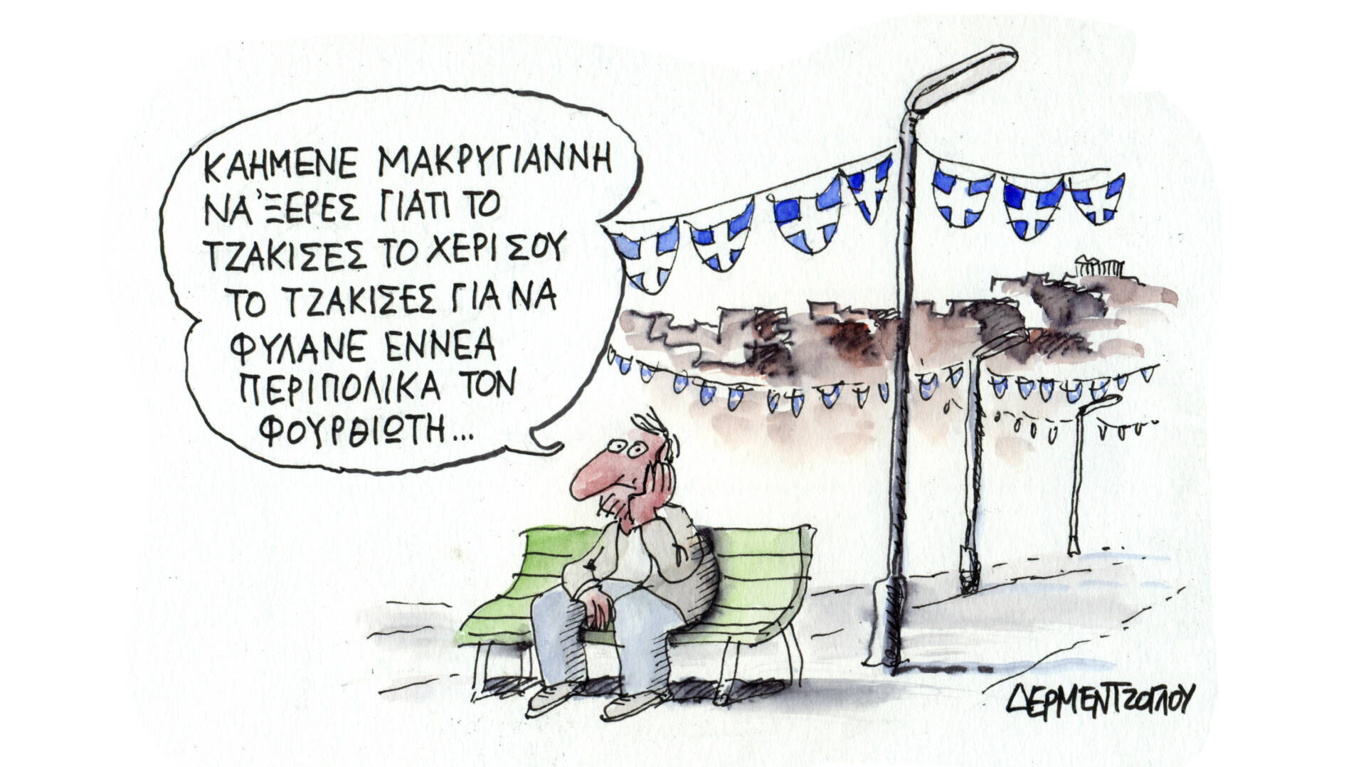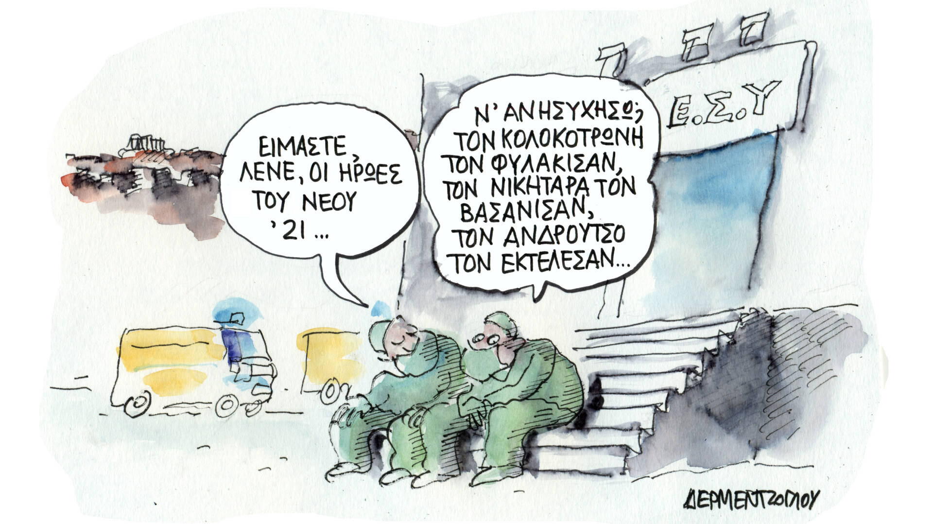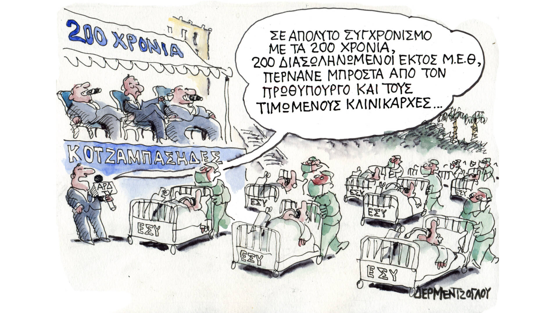 Σκίτσο του Γιάννη Δερμεντζόγλου από τον Ελεύθερο Τύπο.