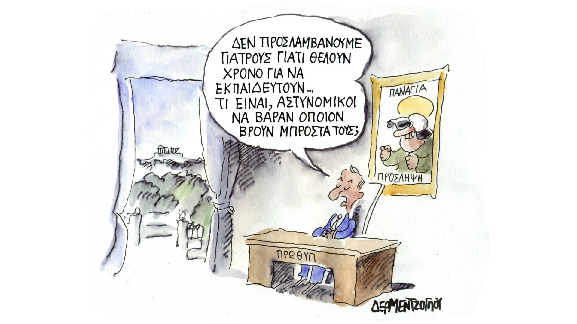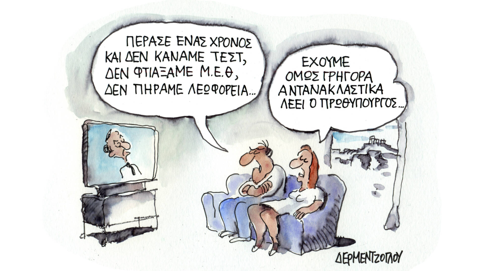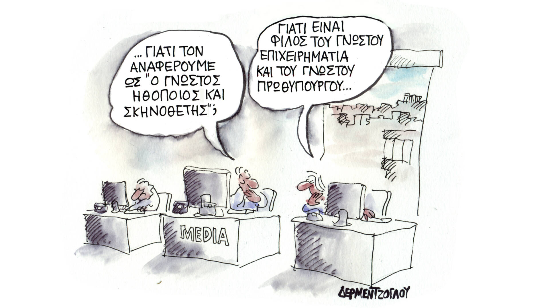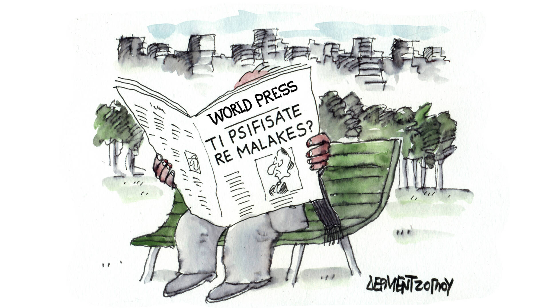 Σκίτσο του Γιάννη Δερμεντζόγλου από τον «Ελεύθερο Τύπο..
