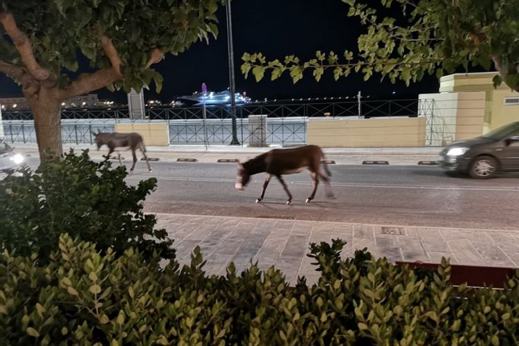 Σύρος: Γάιδαροι έκαναν τη βόλτα τους στην Ερμούπολη [ΒΙΝΤΕΟ]