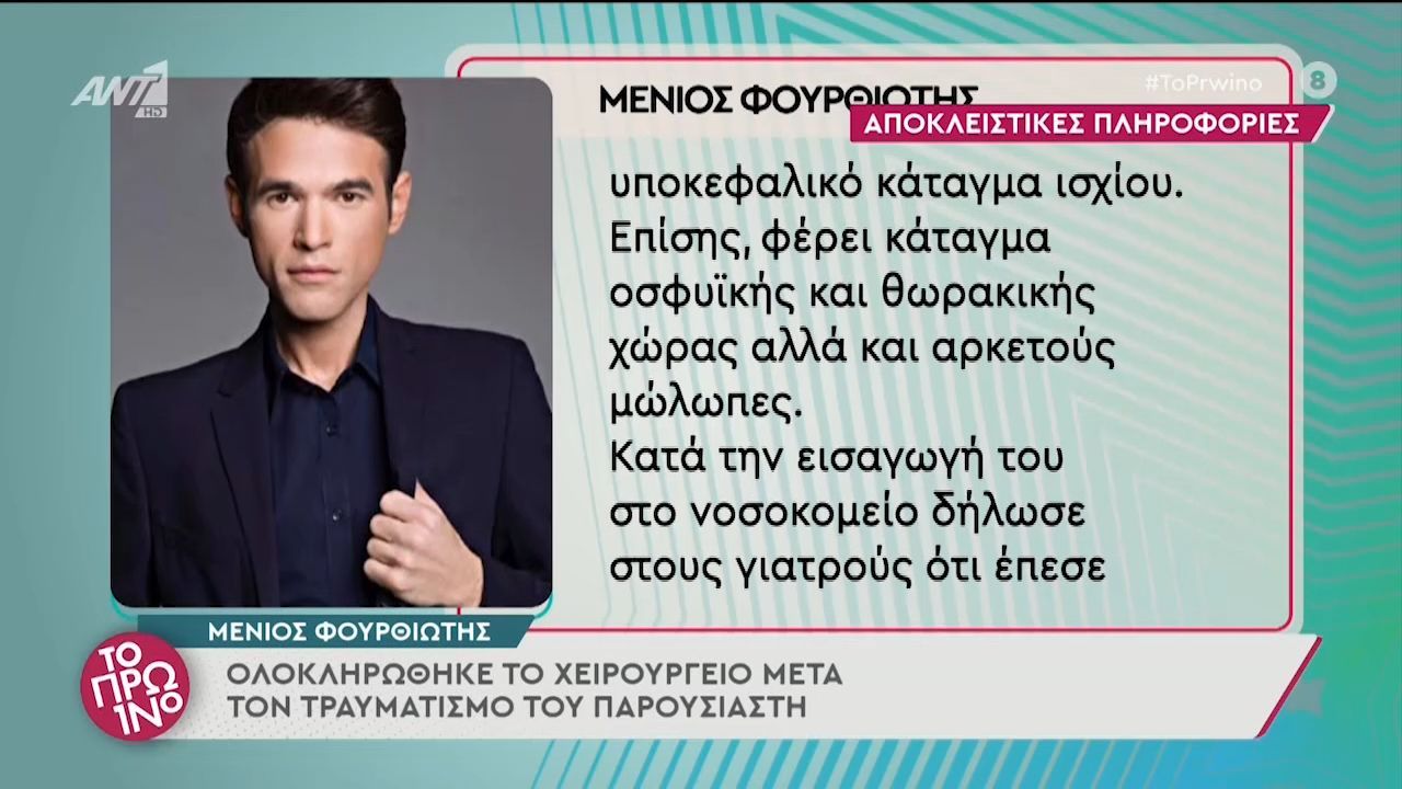 Με σπασμένο πόδι, οστό άρθρωσης ισχύου και πολλά χτυπήματα σε μέση, στήθος, θώρακα, νοσηλεύεται στο ΚΑΤ ο Μένιος Φουρθιώτης, με την κλινική του εικόνα «να μη συνάδει με τις περιγραφές του», σύμφωνα με τον ΑΝΤ1. Όπως μετέδωσε το κανάλι, ο Μένιος Φουρθιώτης παραμένει κλινήρης στον 6ο όροφο του ΚΑΤ σε μονόκλινο δωμάτιο. «Ο Μένιος Φουρθιώτης […]