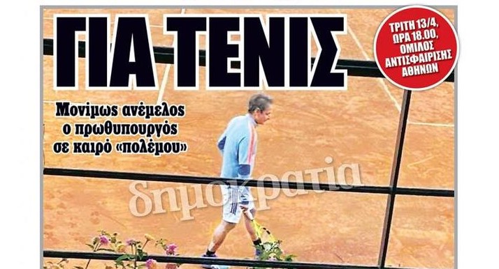 Την οργή και χλεύη του Twitter προκάλεσε το πρωτοσέλιδο της εφημερίδας «Δημοκρατία», με τη φωτογραφία του Κυριάκου Μητσοτάκη να παίζει τένις την ώρα της ανακοίνωσης των νέων αρνητικών ρεκόρ σε νεκρούς και διασωληνωμένους, την Τρίτη 13 Απριλίου. Το αποτέλεσμα ήταν το hashtag #μητσοτακη_παραιτησου να εκτοξευθεί. Μερικές χαρακτηριστικές αντιδράσεις: Τρίτη 13/4/2021!! Ο @PrimeministerGR ανέμελος ως συνήθως […]