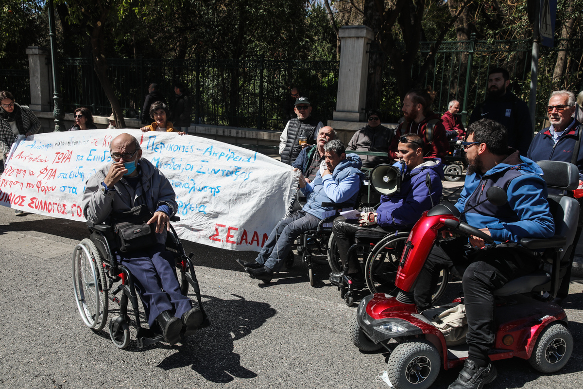 Δυναμική κινητοποίηση ατόμων με αναπηρία έξω από το Μαξίμου παρουσία της ΟΠΚΕ